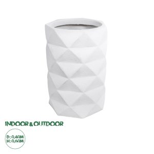 • GloboStar® Artificial Garden VARENNA 20743 Επιδαπέδιο Πολυεστερικό Τσιμεντένιο Κασπώ Γλάστρα – Flower Pot Λευκό Φ40 x Υ60cm