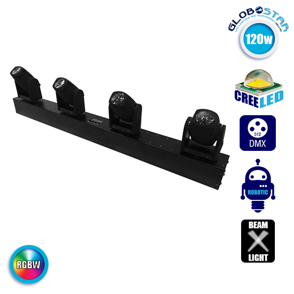 Επαγγελματική Κινούμενη Ρομποτική Κεφαλή Τεσσάρων Κεφαλών 4x10W Lumi Engin Beam CREE LED 120W 230V 8° DMX512 RGBW GloboStar 51121