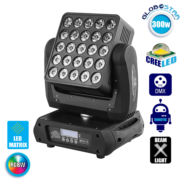 Επαγγελματική Κινούμενη Ρομποτική Κεφαλή LED MATRIX INFINITY ROTATE WASH 10° 25x12W CREE LED 230V DMX512 RGBW GloboStar 51150