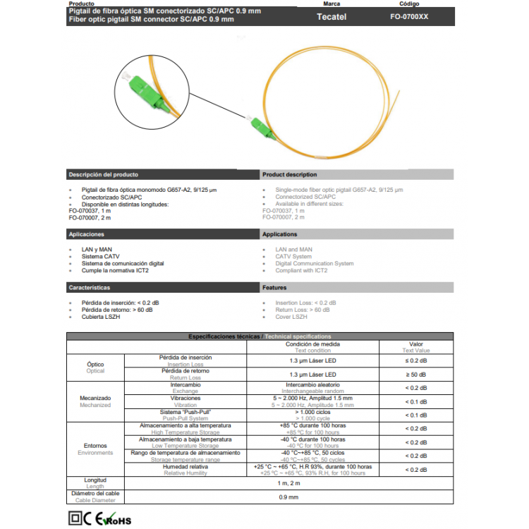 PIGTAIL FO SM 9/125 SC/APC G657A2 0,9mm LSZH 2 ΜΕΤΡΑ