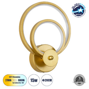 • GloboStar® FREDDIE 61078 Φωτιστικό Τοίχου – Απλίκα Design LED CCT 15W 1800lm 300° AC 220-240V – Εναλλαγή Φωτισμού μέσω Διακόπτη On/Off All In One Ψυχρό 6000k+Φυσικό 4500k+Θερμό 2700k Μ20 x Π7.5 x Υ25cm – Χρυσό Βούρτσας