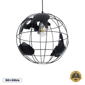 • GloboStar® EARTH 01663 Vintage Industrial Κρεμαστό Φωτιστικό Οροφής Μονόφωτο 1 x E27 AC220-240V IP20 – Φ40 x Υ40cm – Μαύρο Μεταλλικό Πλέγμα – 5 Χρόνια Εγγύηση